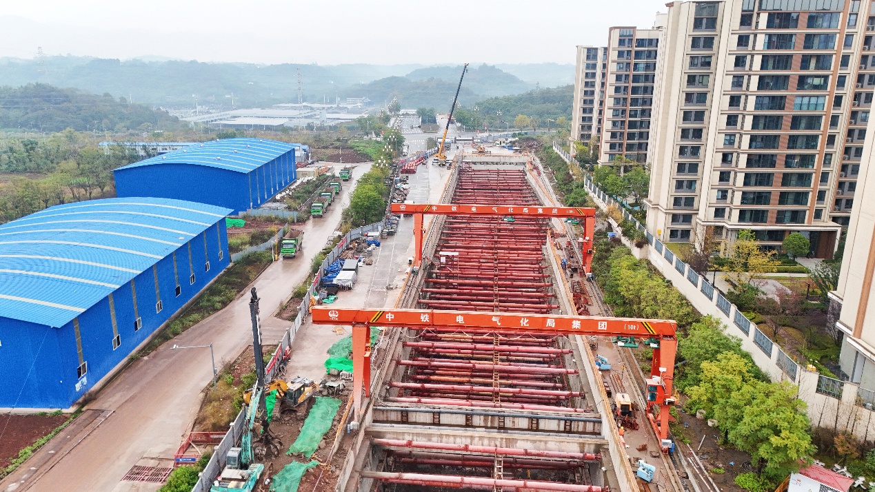 物流园枢纽站至物流园北站大里程明挖区间施工现场。