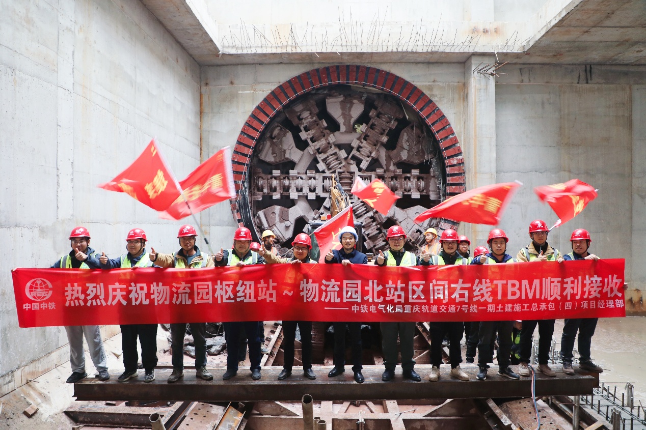 重庆轨道交通7号线一期工程物流园枢纽站至物流园北站区间右线TBM顺利接收。丁玲摄