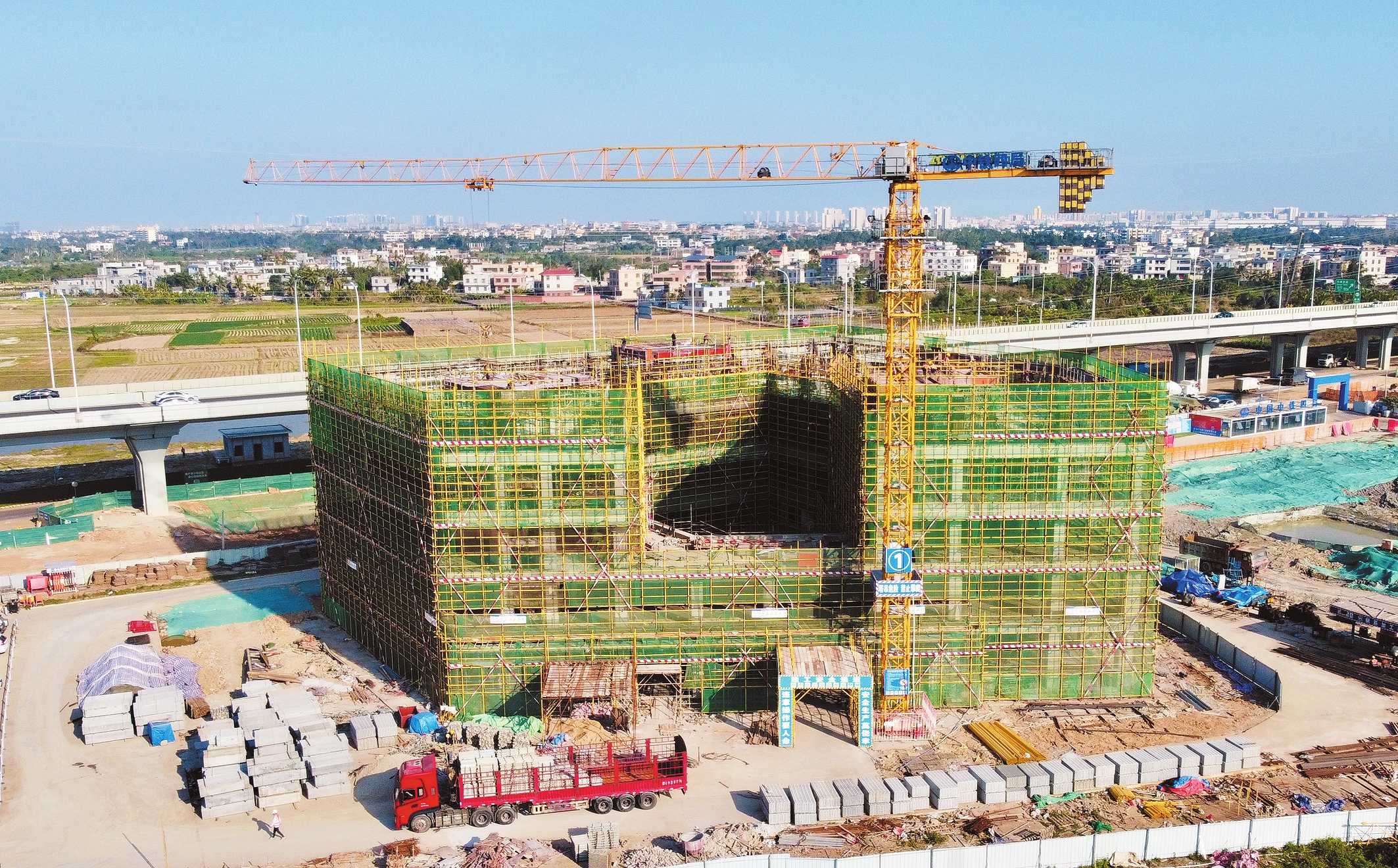 俯瞰正在加快建设的海口江东新区地下综合管廊控制中心一期项目。
